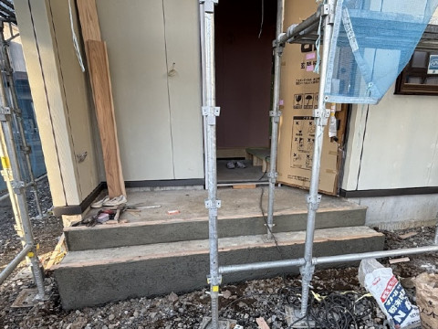 ポーチ土間の洗い出し仕上げの工事が行われています。