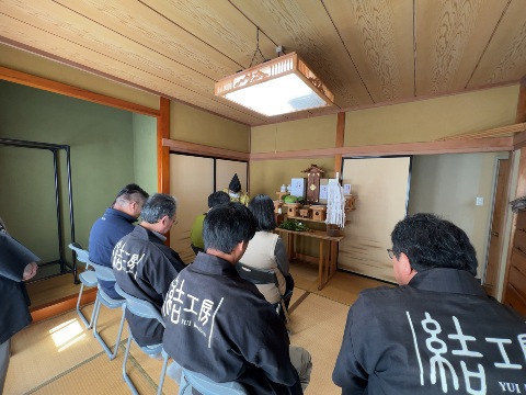 造作家具工事に入りました。一枚板の杉カウンターが取付けられております。