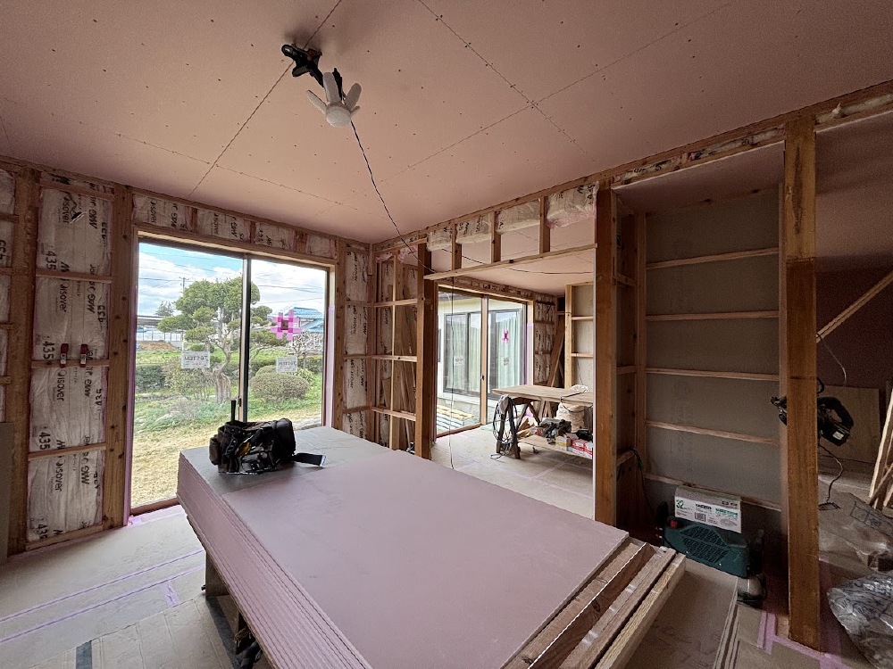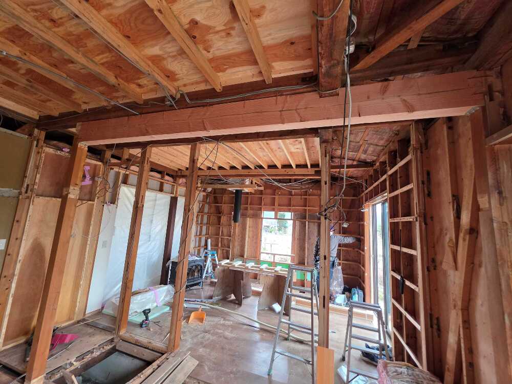 収納の場所を変えて空間が広くなるように、補強梁を入れて柱を抜きました。