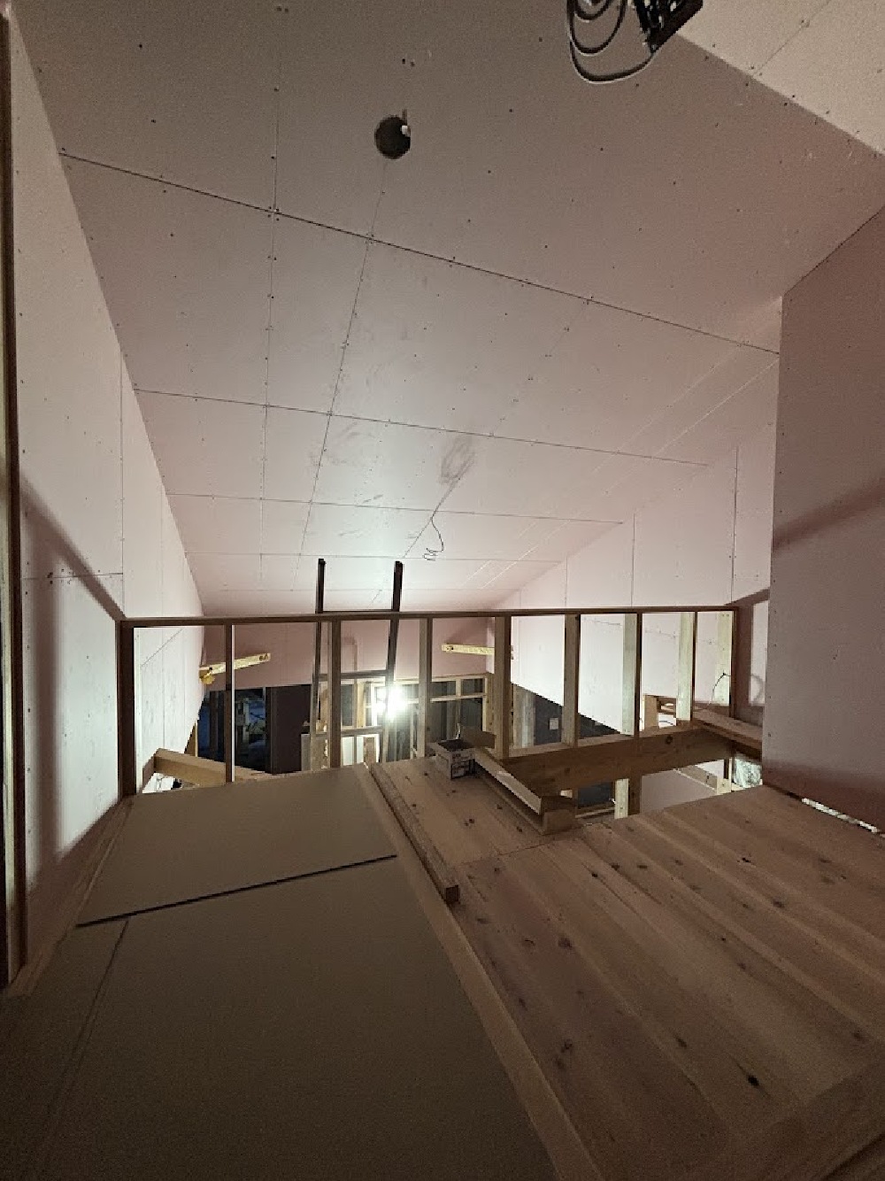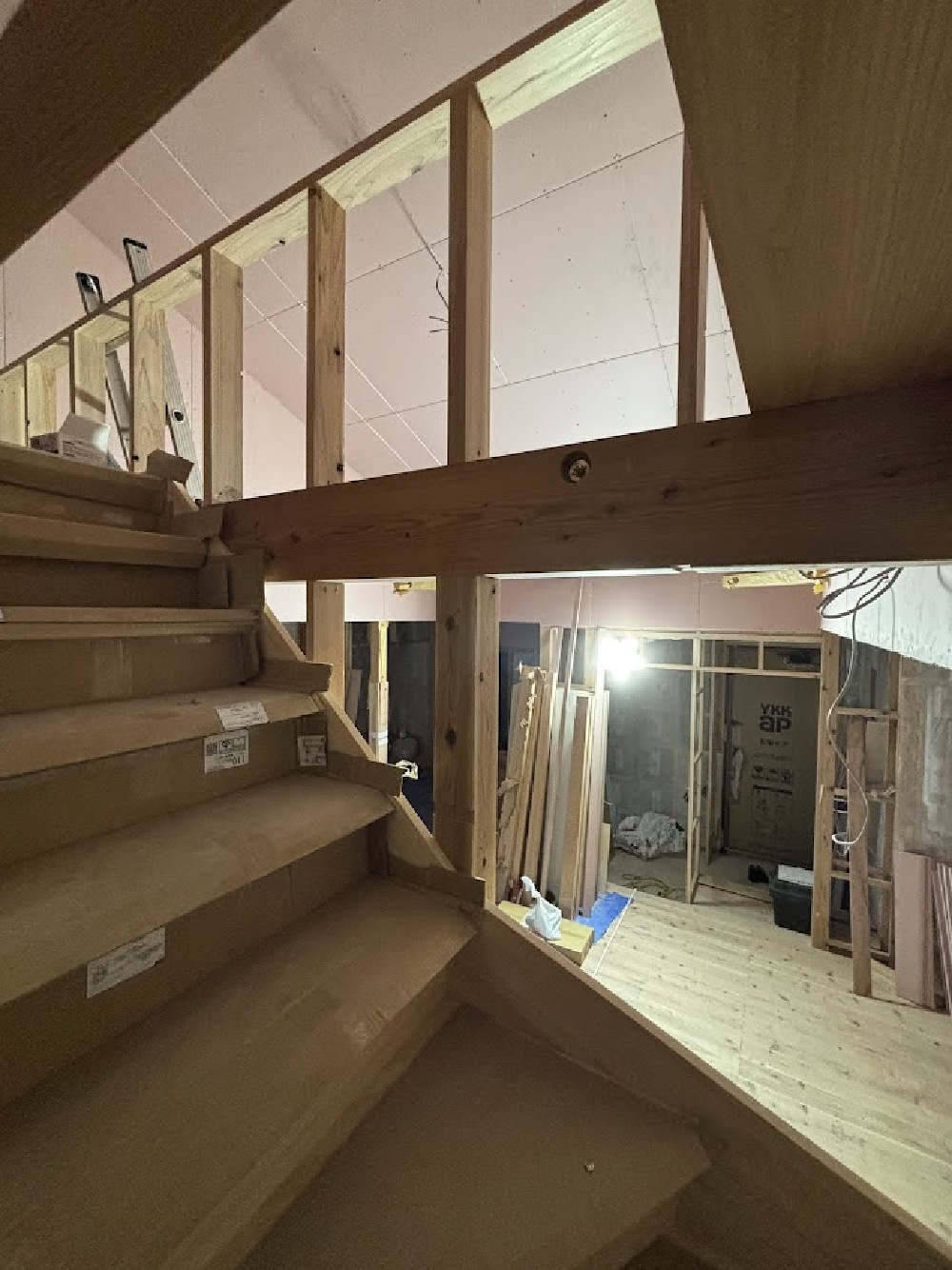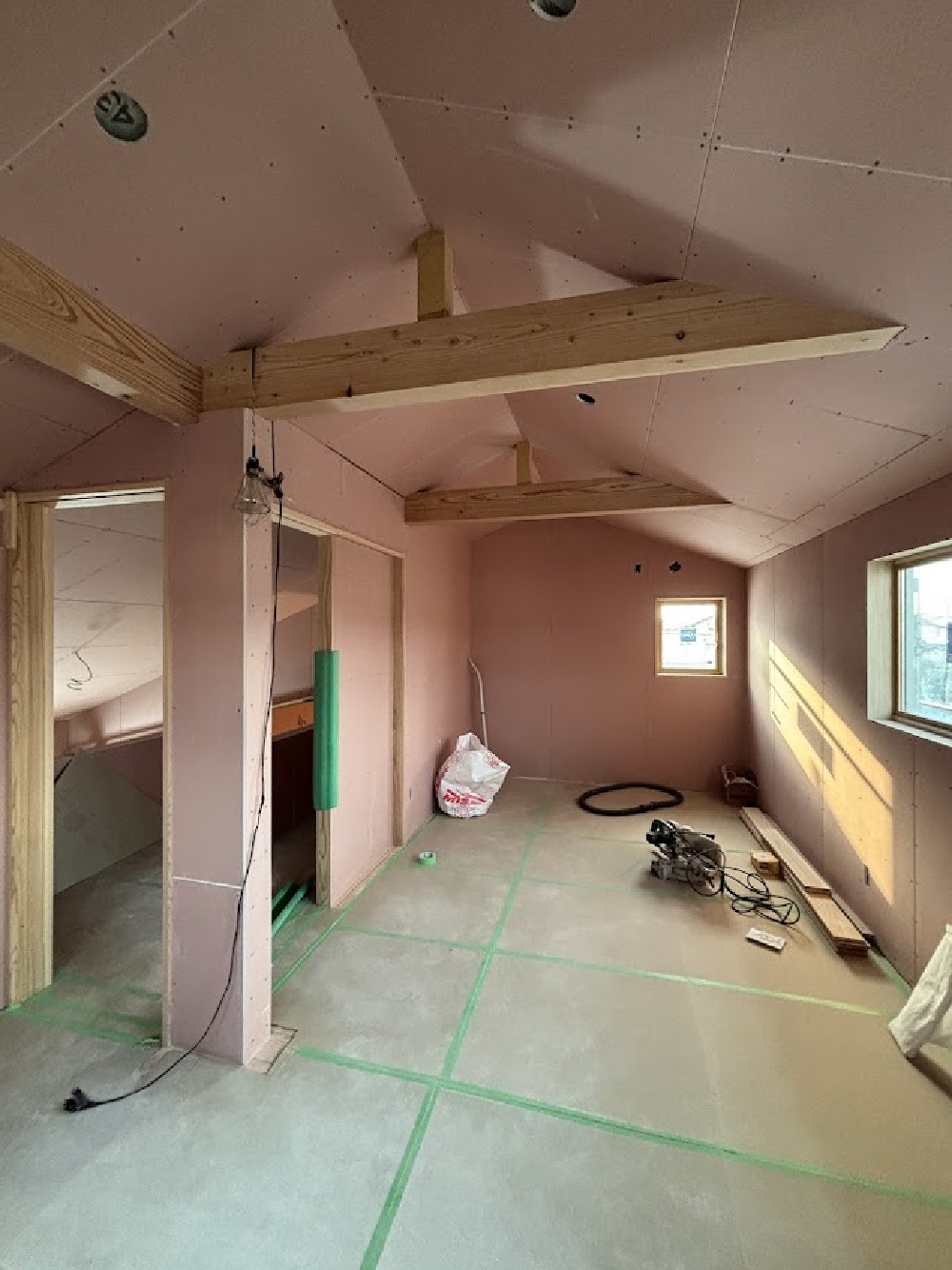 内部の様子。床を張る前にベタ基礎を乾かす作業をしました。