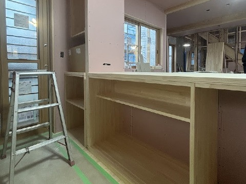 造作家具の設置が行われております。