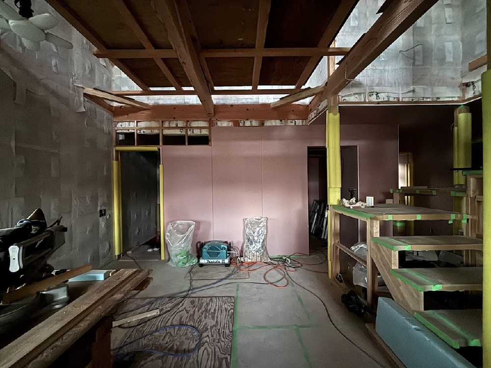 ボード張りとあわせて造作家具工事が進められています。