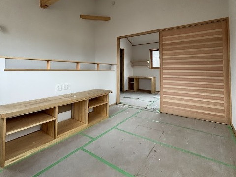 内部塗装が完了しました。本日は建具の建て込みが行われています。