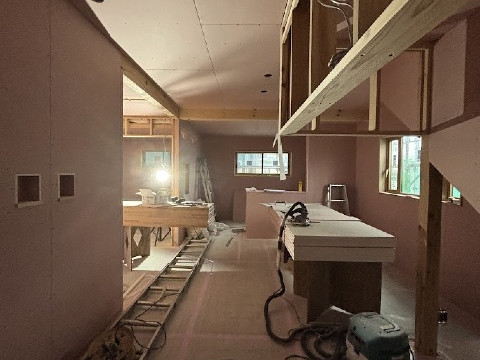 内部のボード張りが行われています。